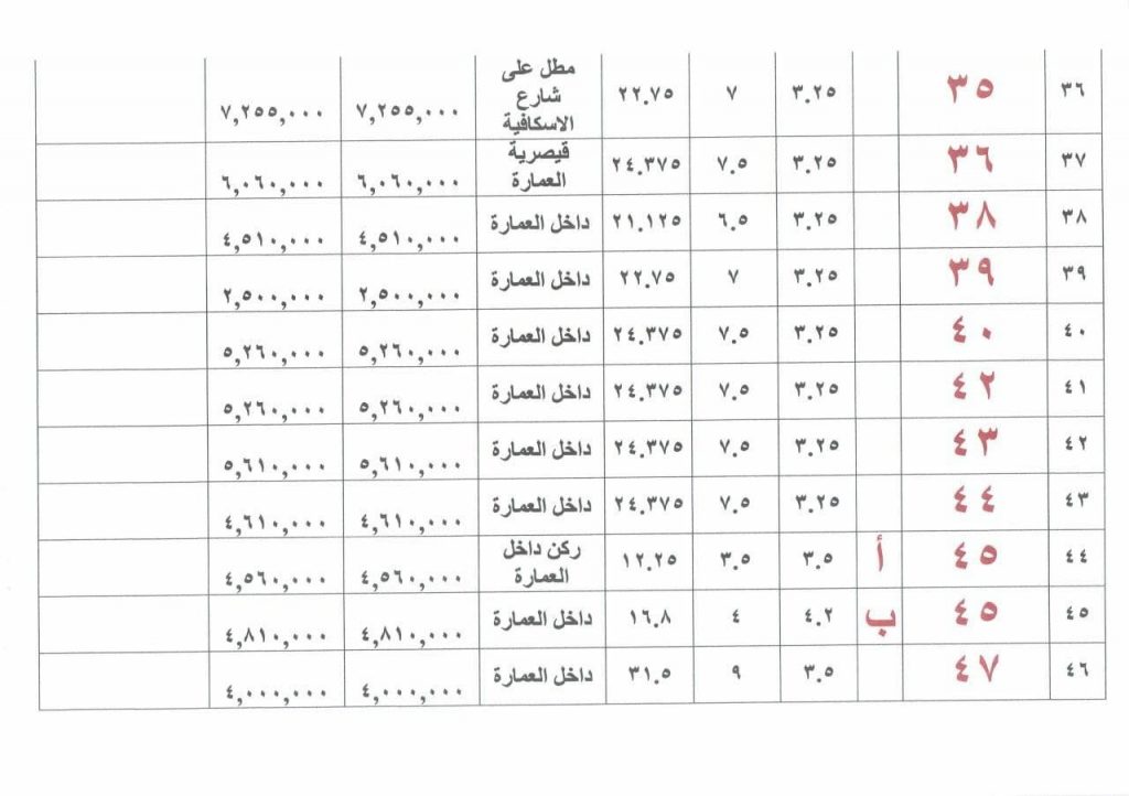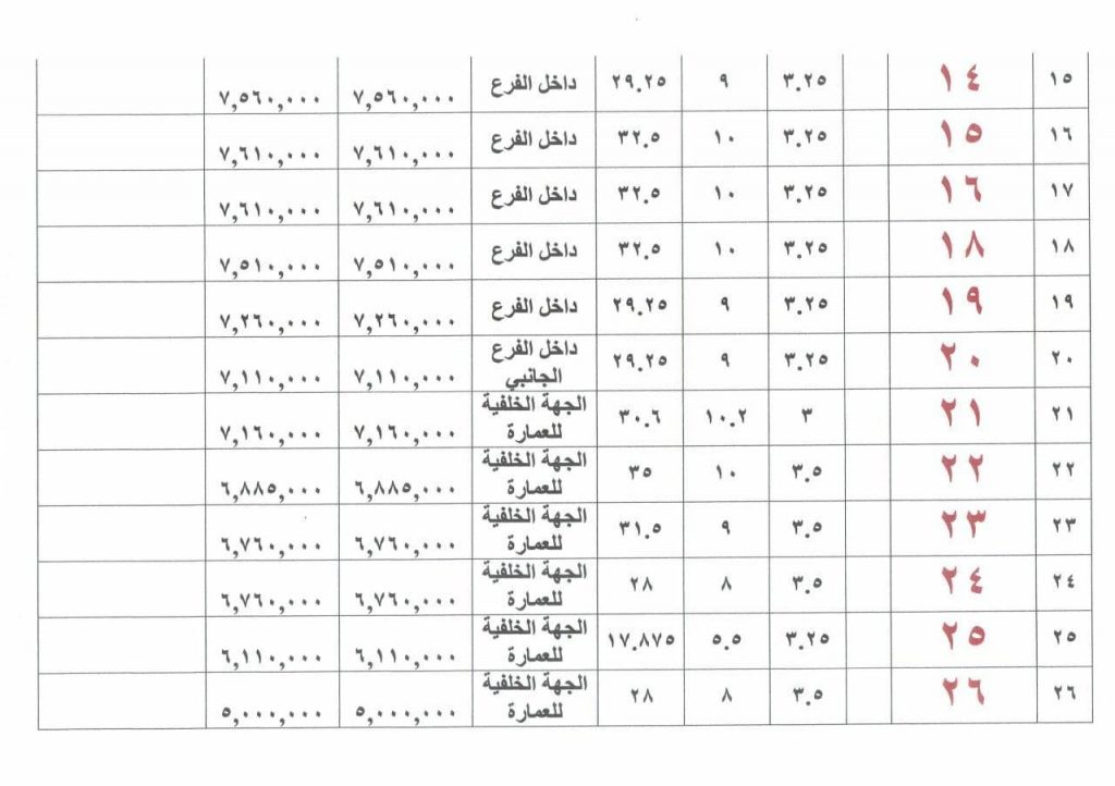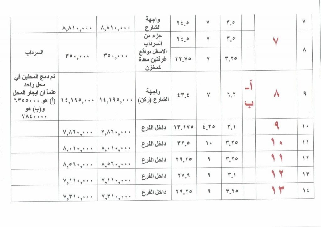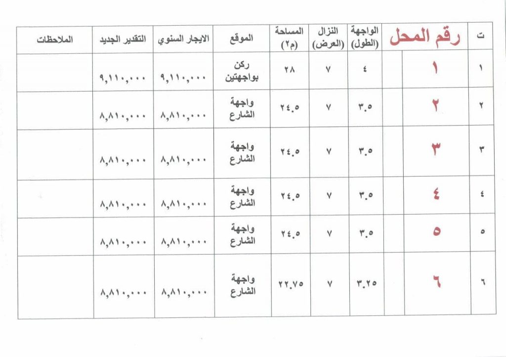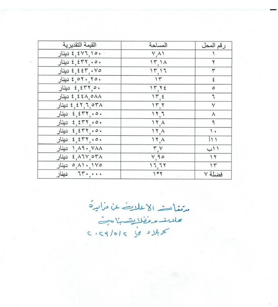 ملاحظة : اذا صادف يوم المزايدة عطلة رسمية تؤجل الى اليوم التالي من الدوام الرسمي